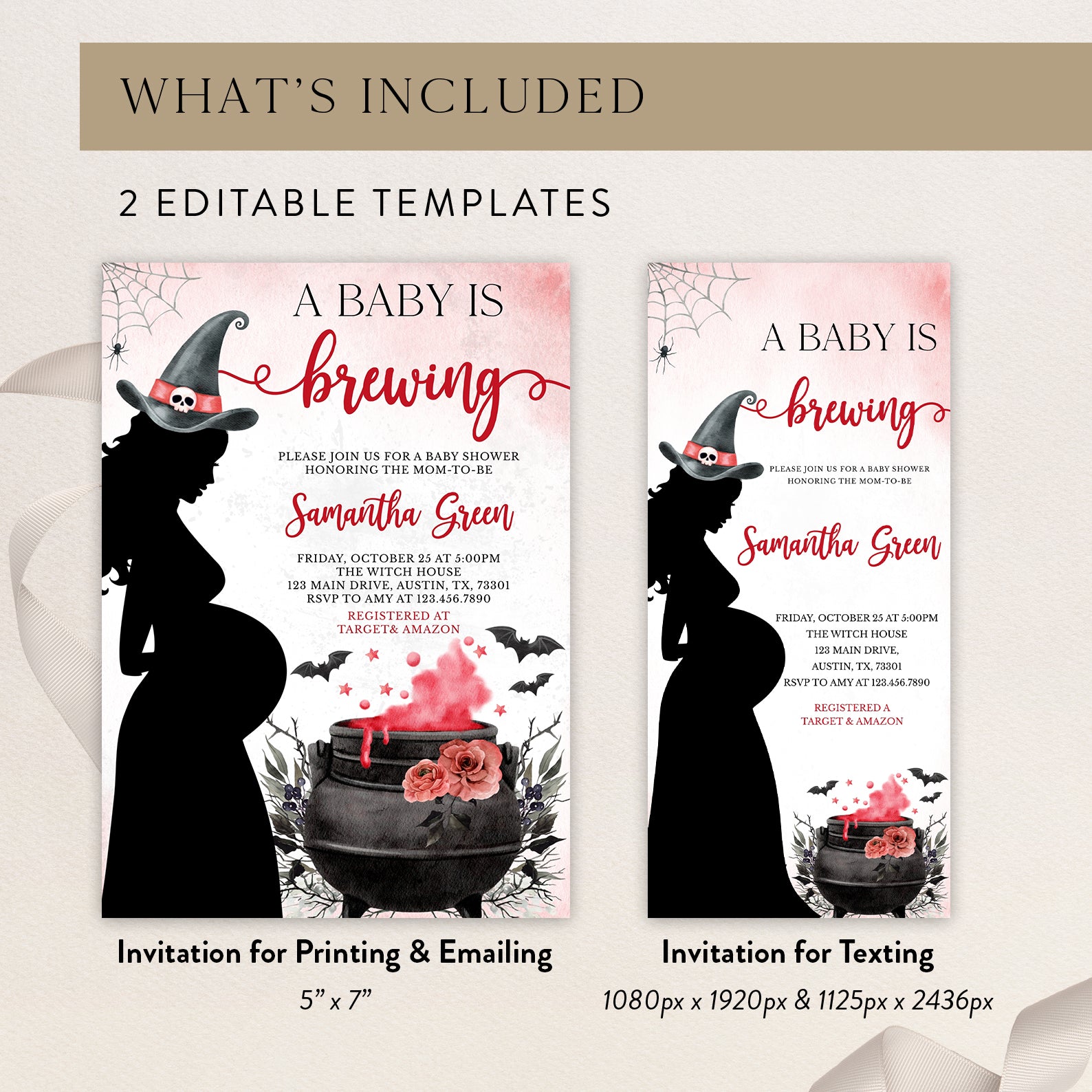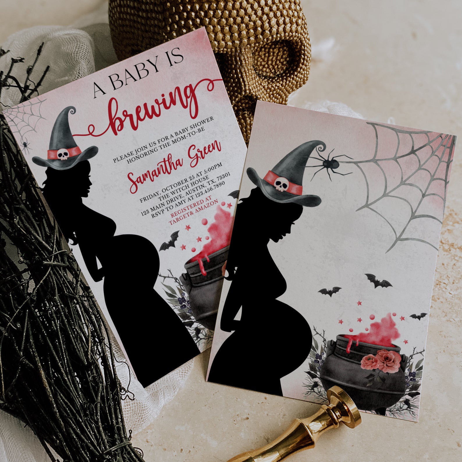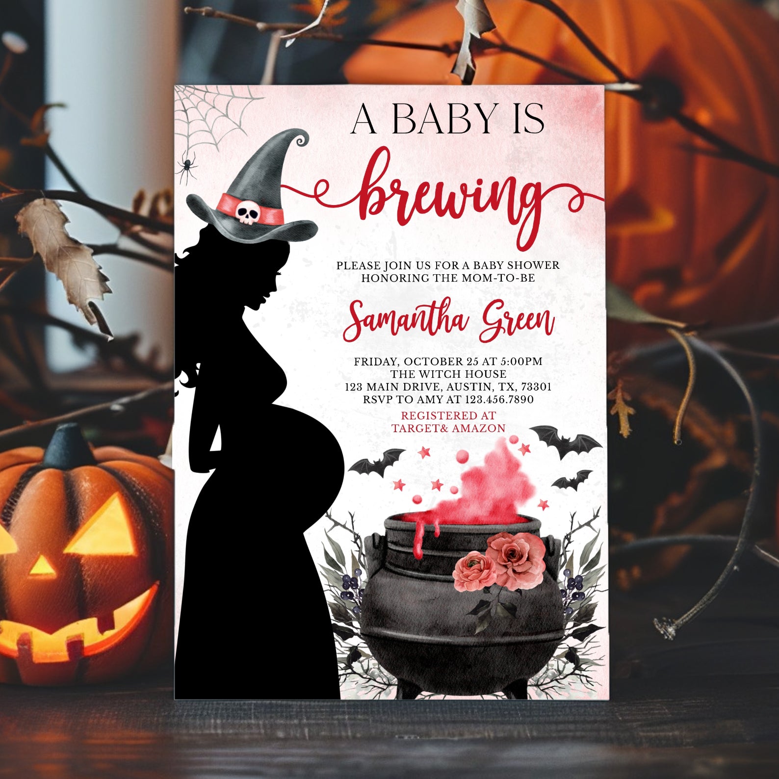 - Purchase this Spellbinding Baby Shower Invite: Pregnant Witch & Cauldron template