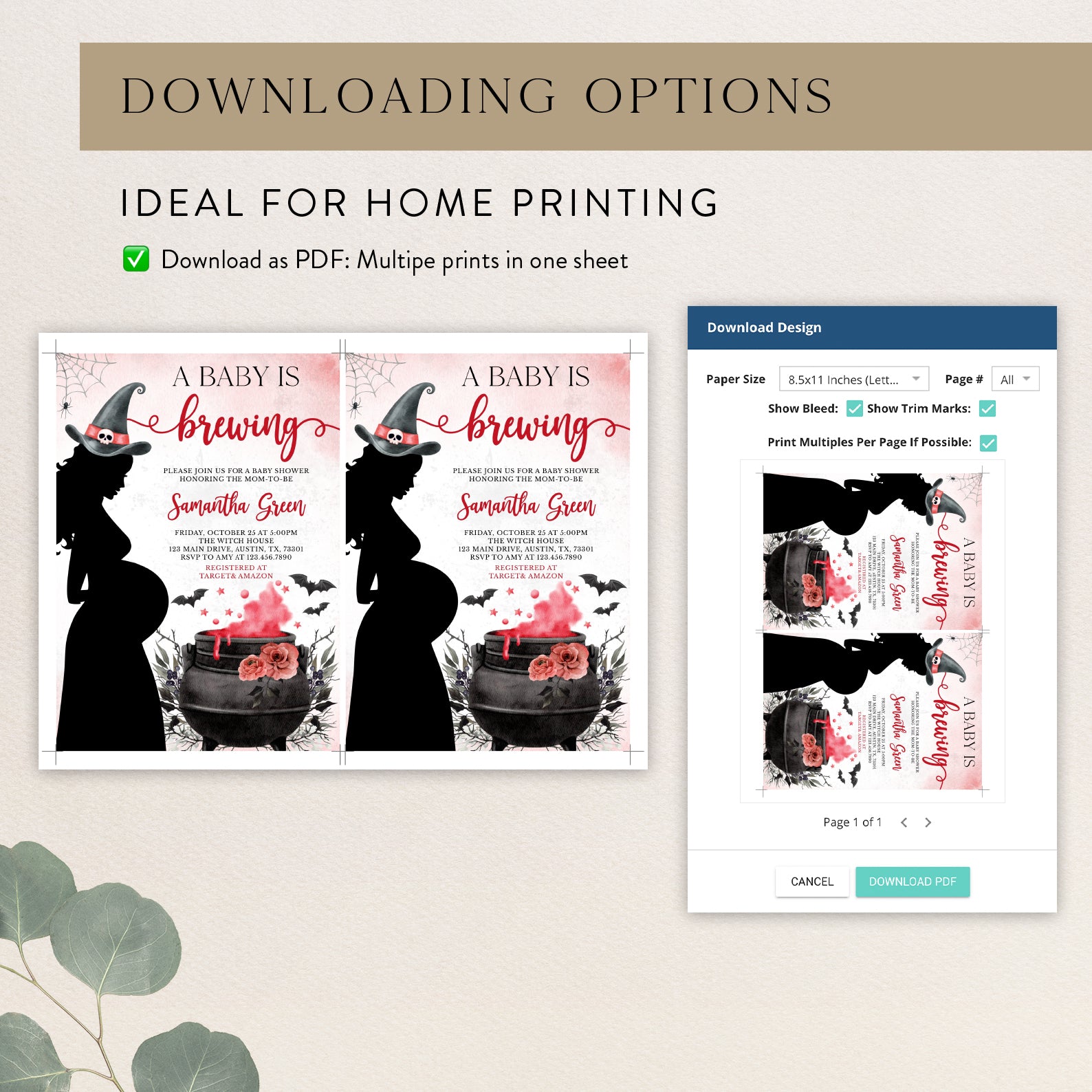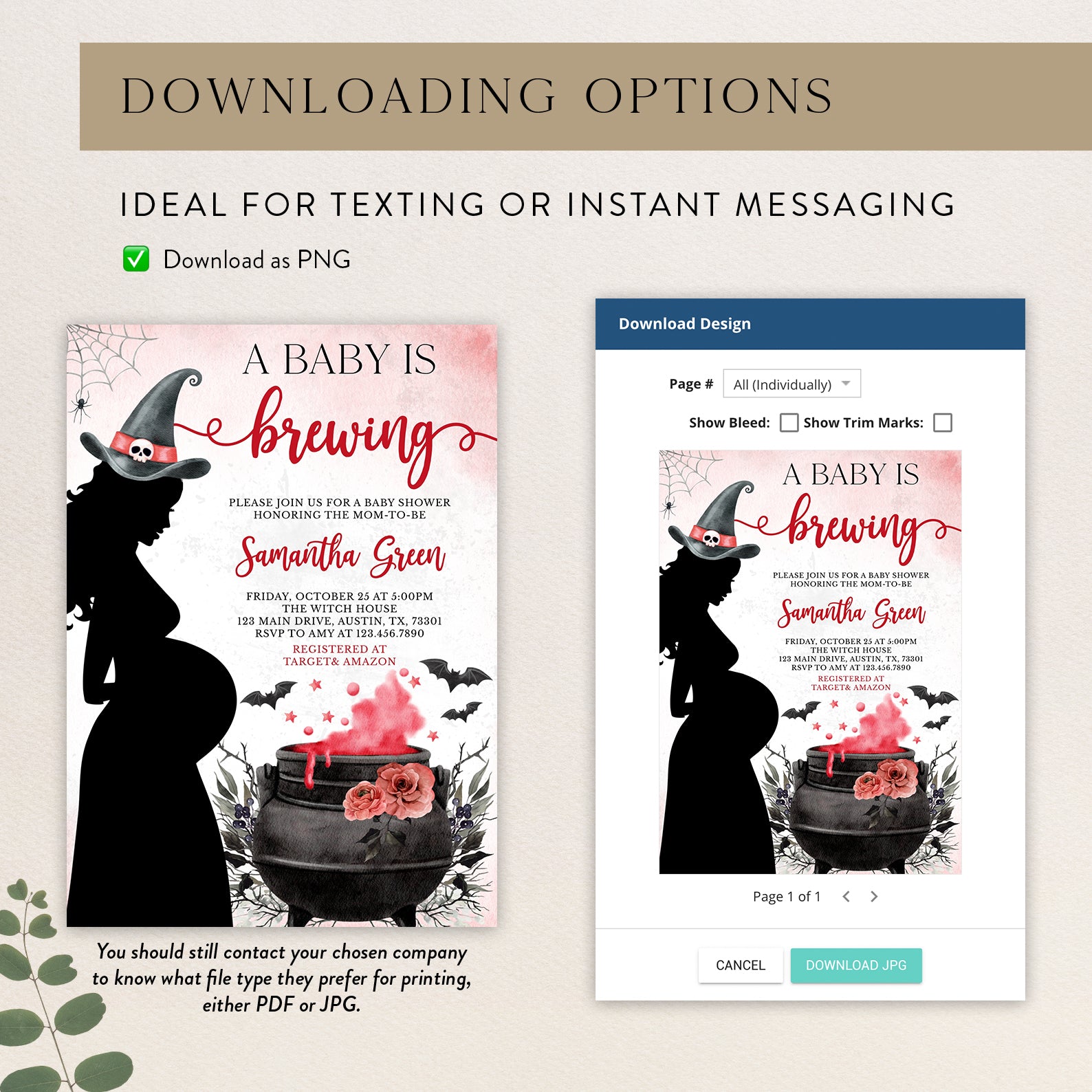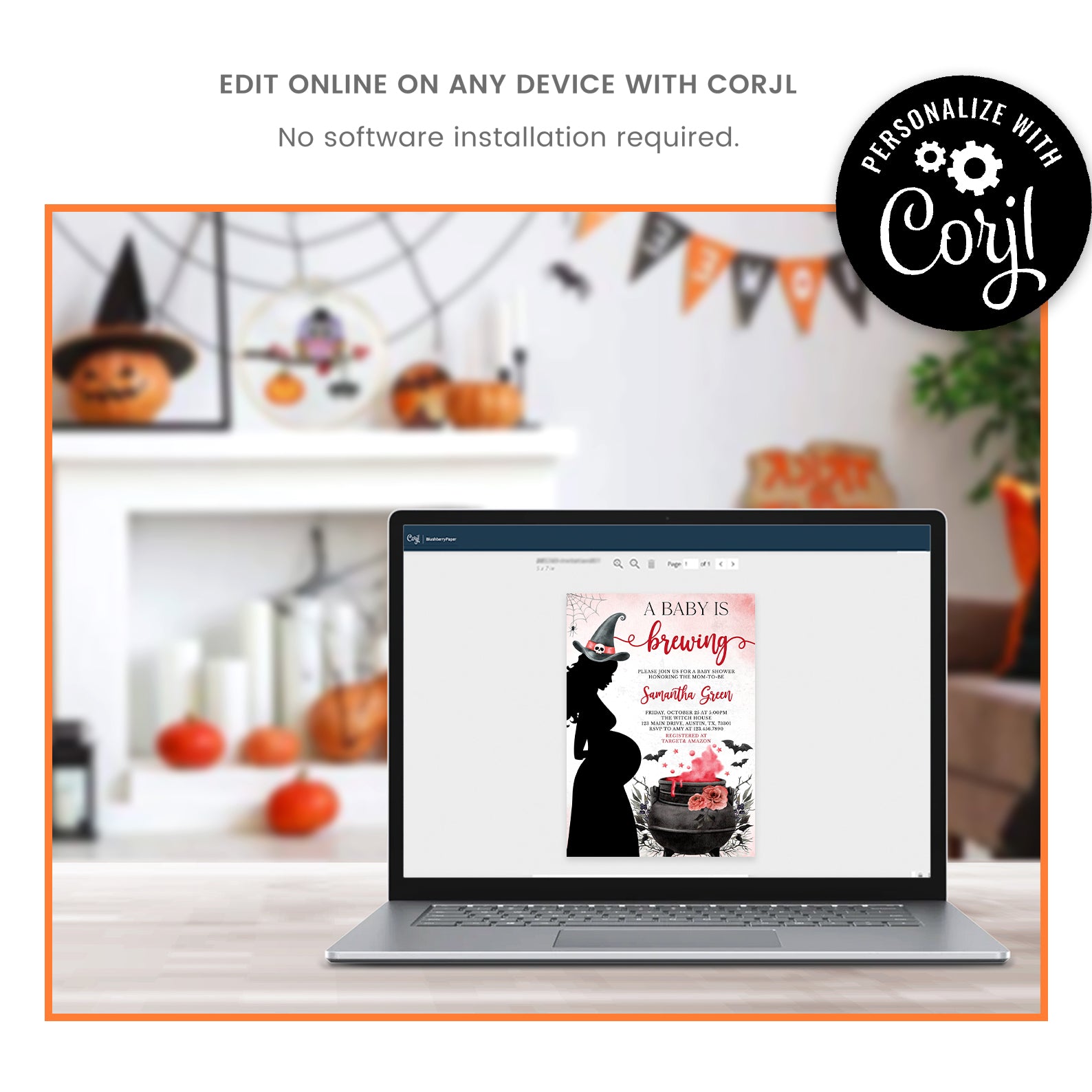 - Purchase this Spellbinding Baby Shower Invite: Pregnant Witch & Cauldron template