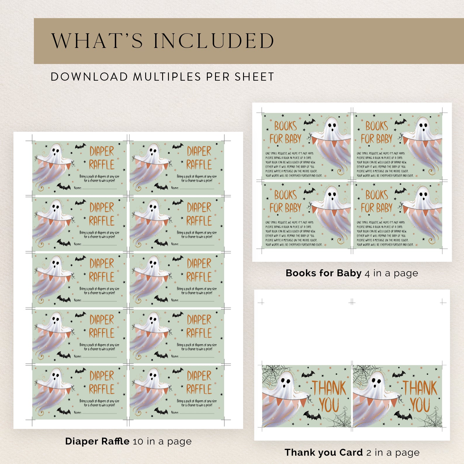 Diaper Raffle Ticket: Add a spooky twist to your diaper raffle with matching tickets that feature the same playful ghost theme. Encourage guests to join in the fun while contributing to your diaper stash.