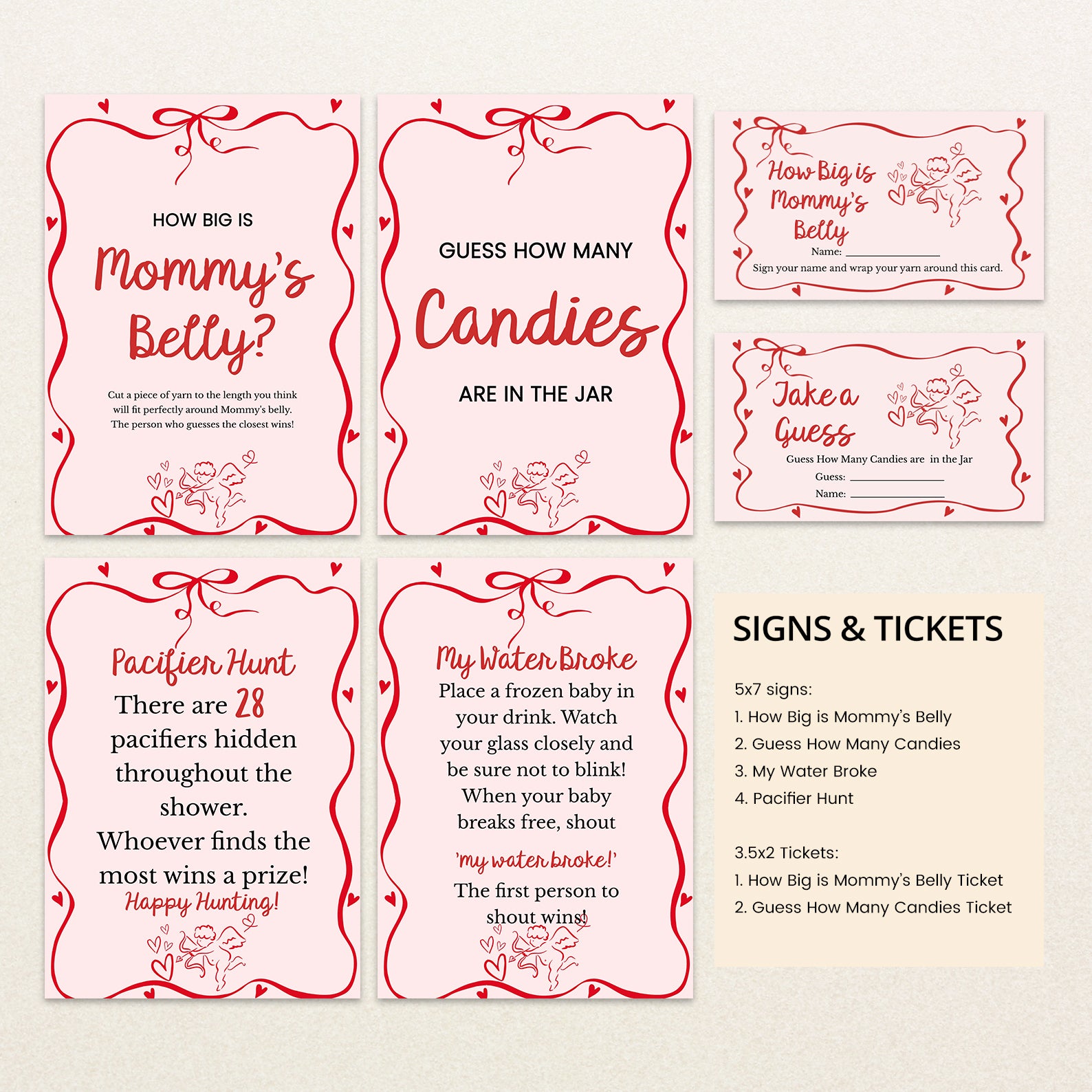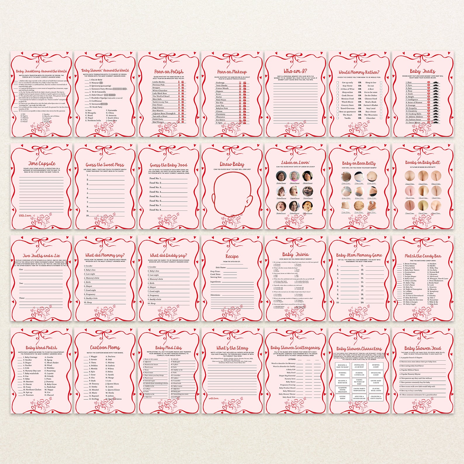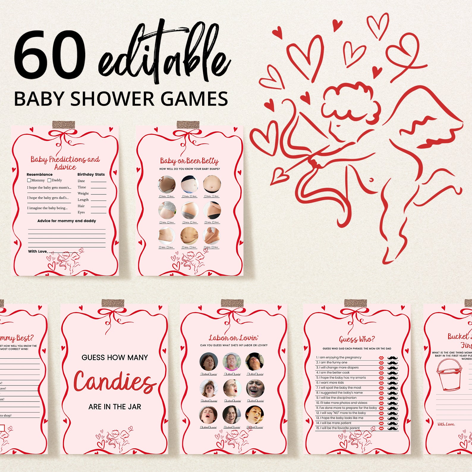 Add a playful touch of love to your celebration with this delightful bundle of 60 editable baby shower games, designed to match your sweet cupid and heart-themed invitation. Featuring charming red hearts, a whimsical cupid, and delicate pink accents, this collection brings warmth, fun, and joy to your special day. Fully customizable, each game is easy to personalize, ensuring your guests have a wonderful time. Whether you’re hosting a cozy tea party or an elegant gathering, this bundle creates the perfect atmosphere for a memorable baby shower full of love and laughter.