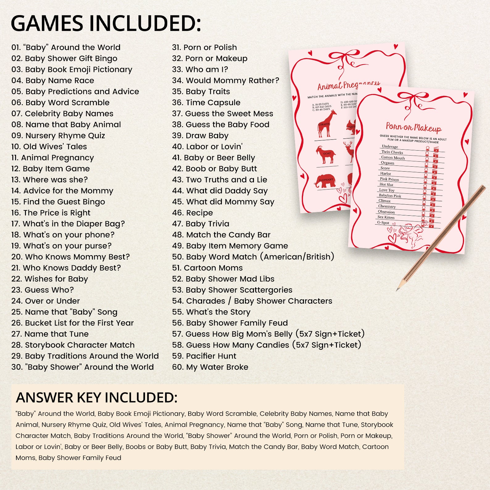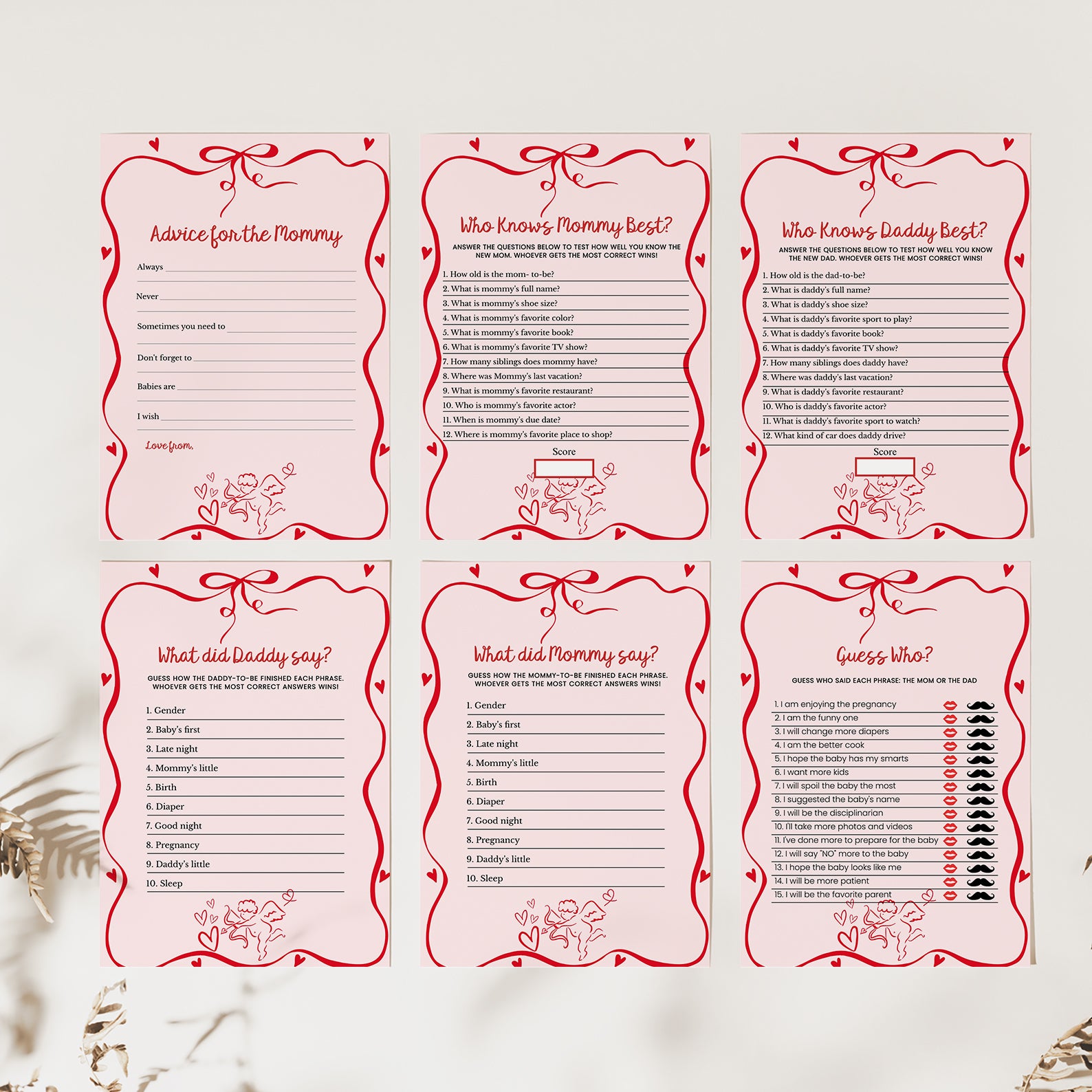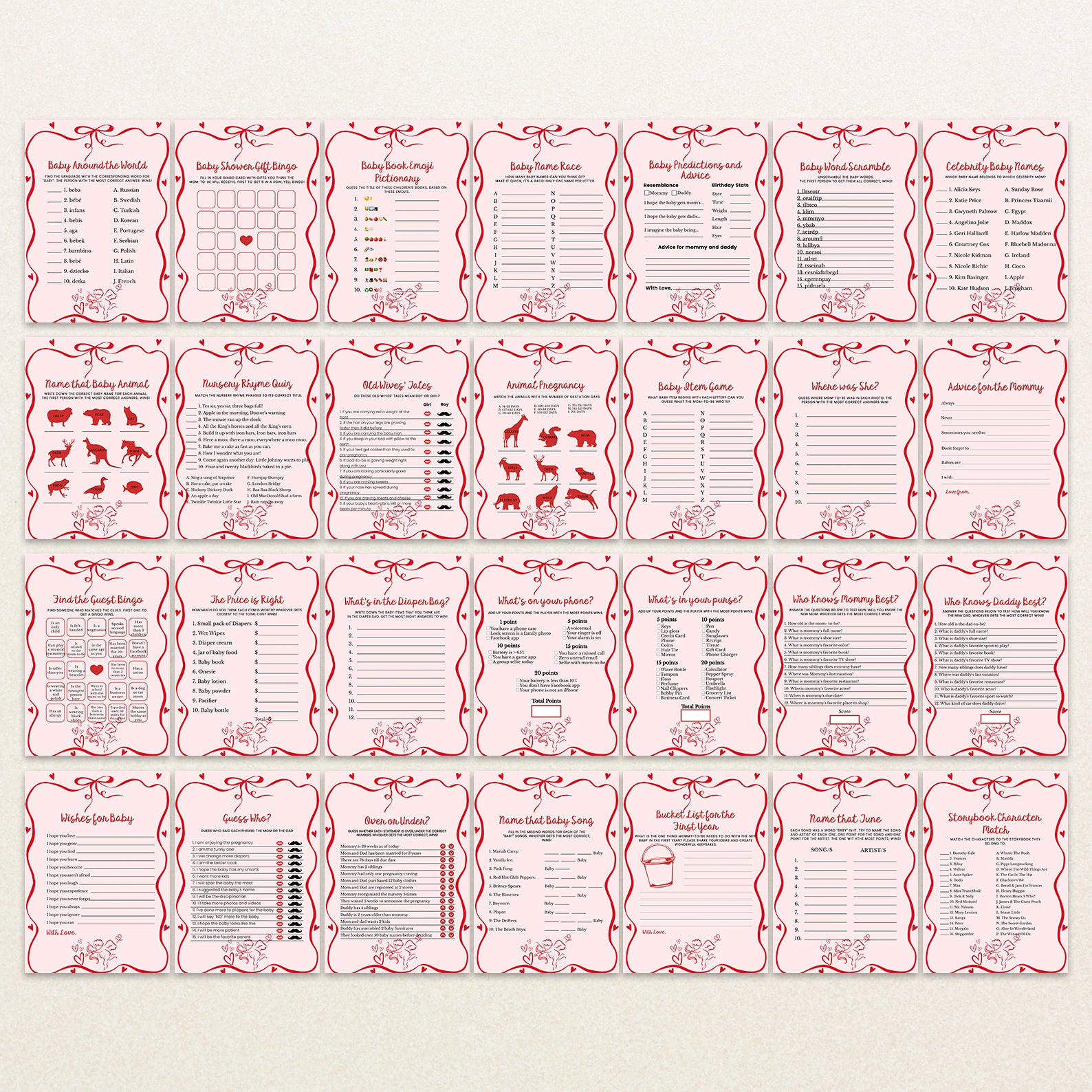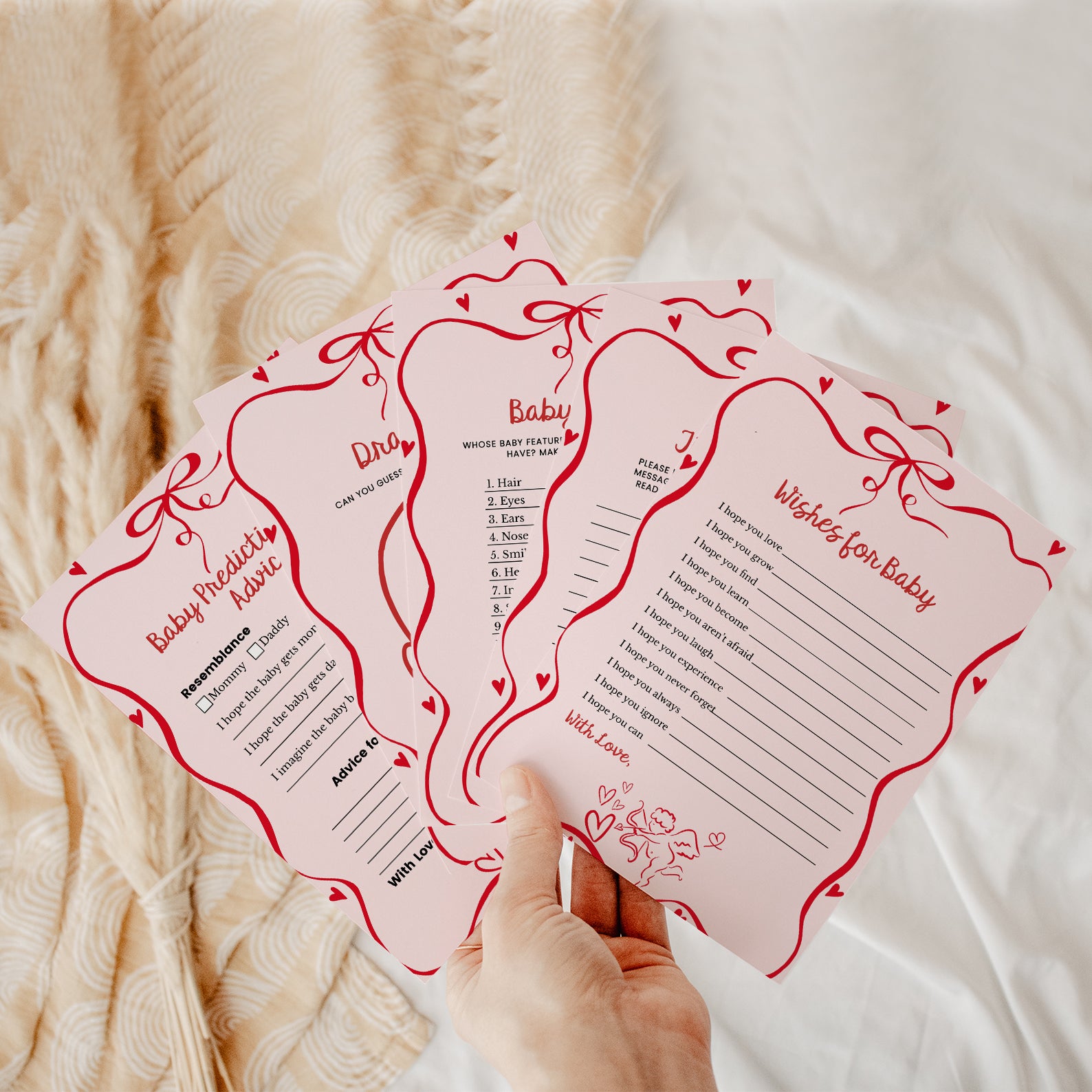 Add a playful touch of love to your celebration with this delightful bundle of 60 editable baby shower games, designed to match your sweet cupid and heart-themed invitation. Featuring charming red hearts, a whimsical cupid, and delicate pink accents, this collection brings warmth, fun, and joy to your special day. Fully customizable, each game is easy to personalize, ensuring your guests have a wonderful time. Whether you’re hosting a cozy tea party or an elegant gathering, this bundle creates the perfect atmosphere for a memorable baby shower full of love and laughter.