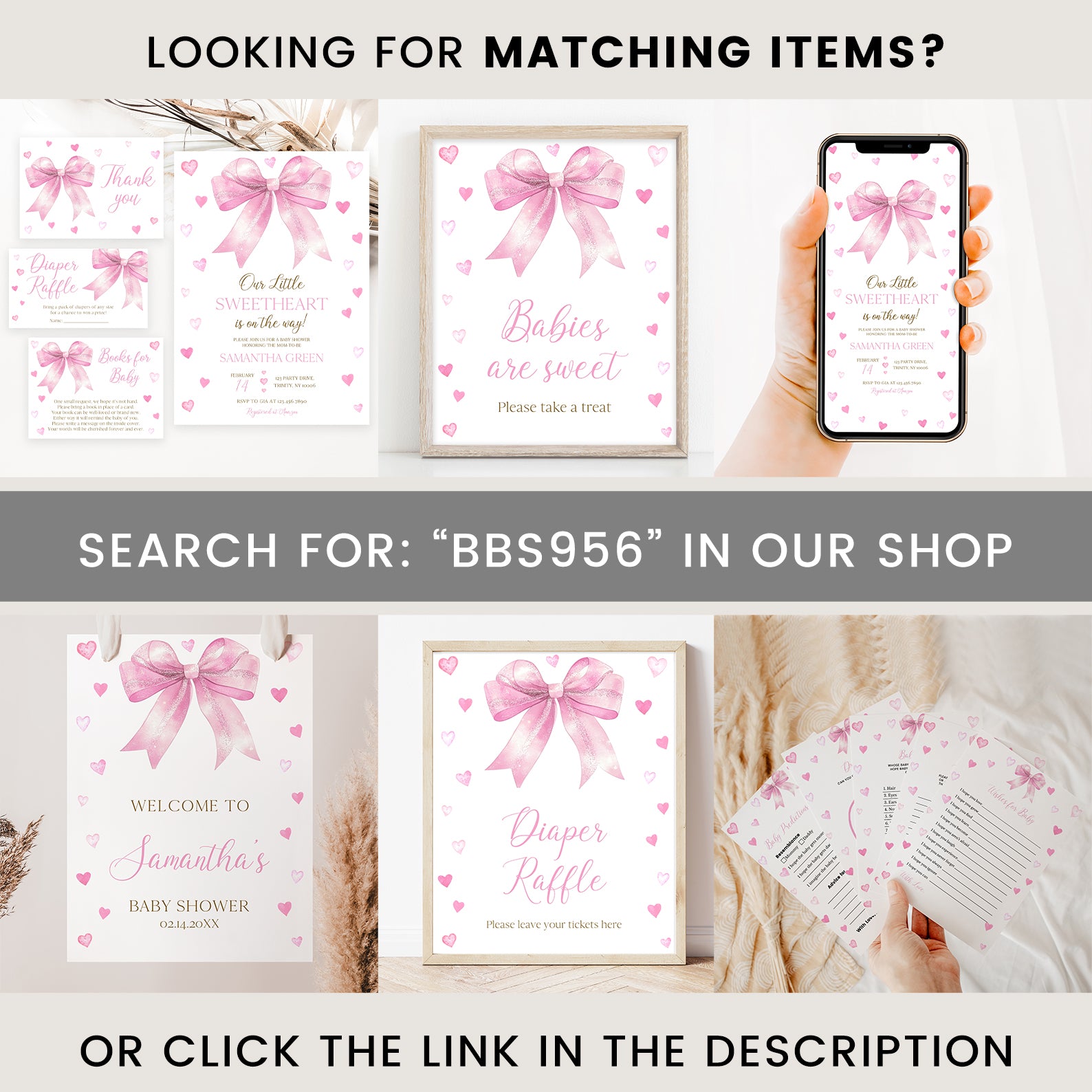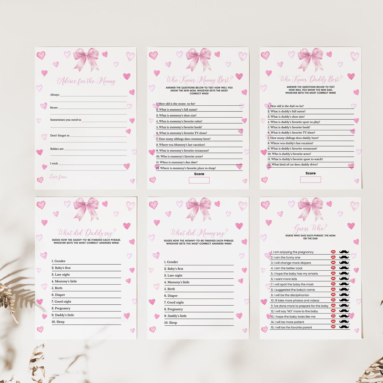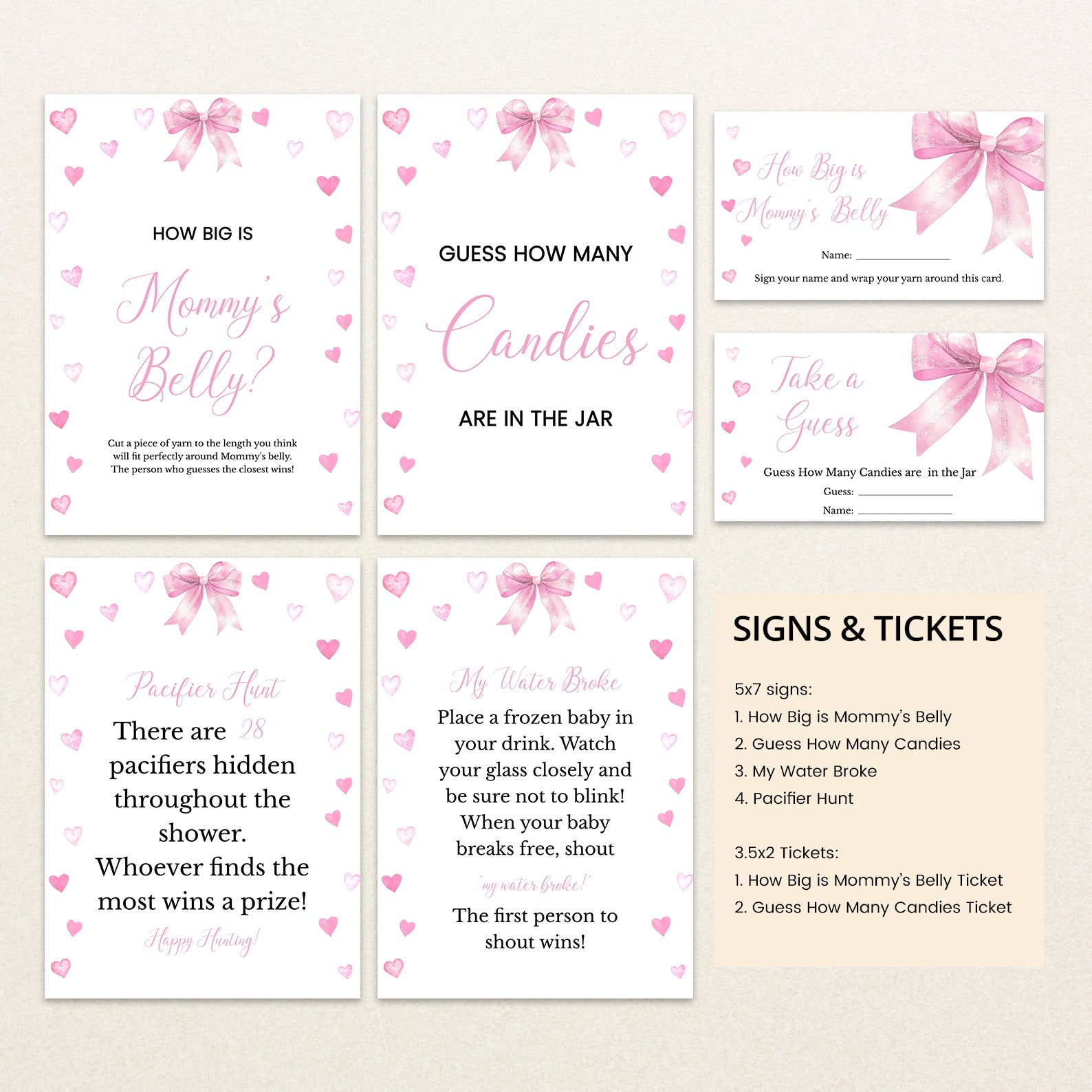 - Purchase this Spring Baby Shower Game Bundle with Pink Ribbon & Heart Accents template