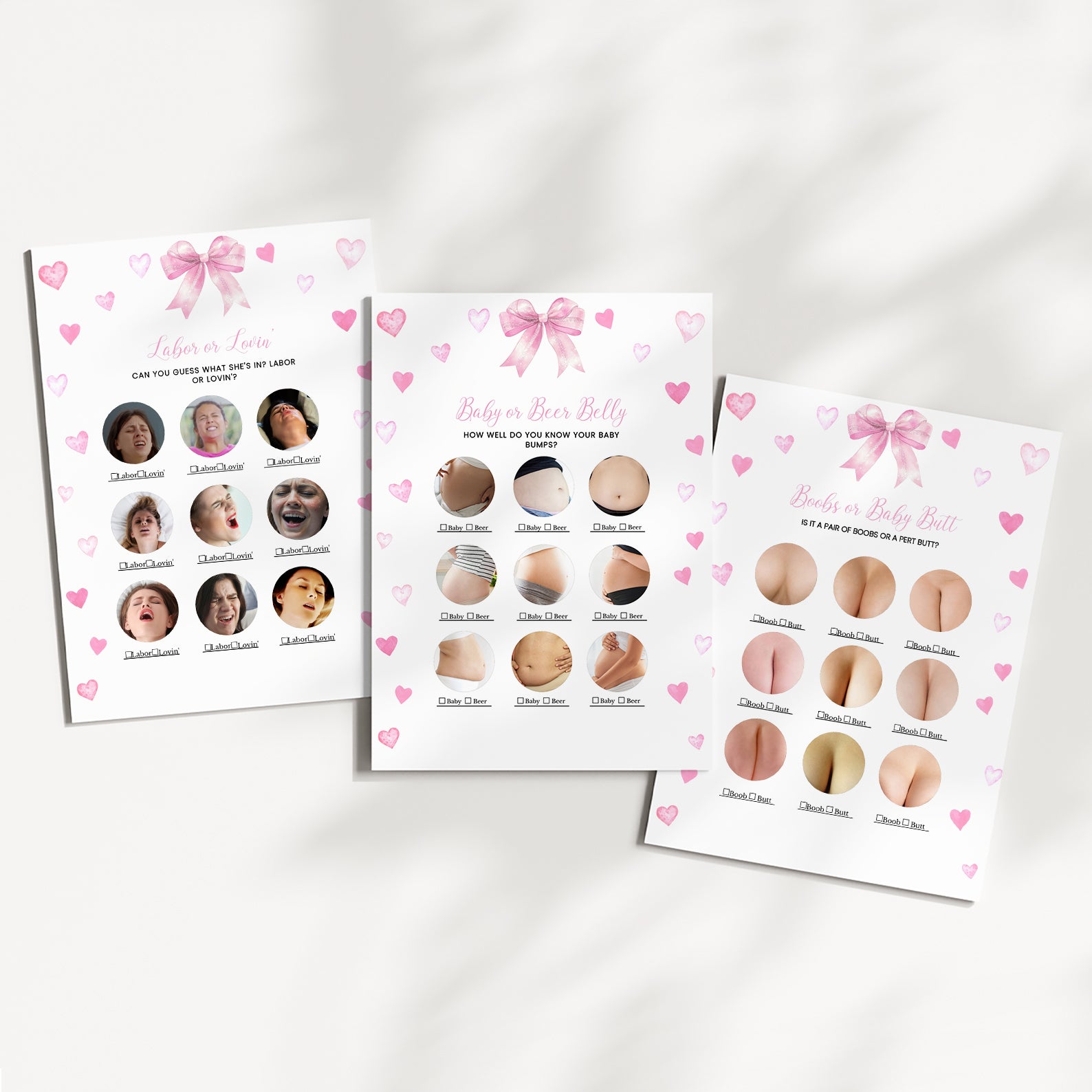 Spring Baby Shower Game Bundle with Pink Ribbon & Heart Accents