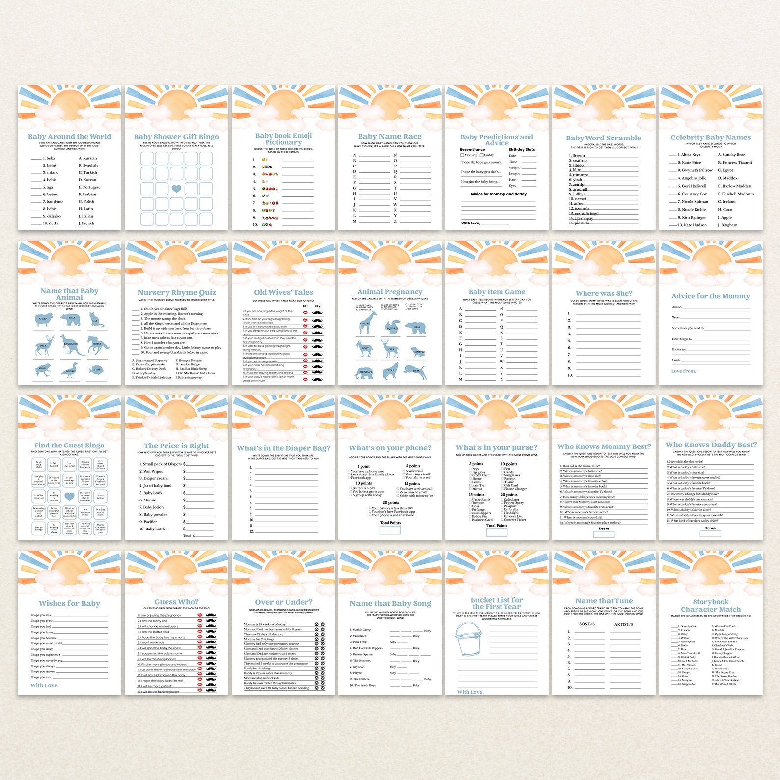 Sunny Baby Shower Game Bundle: Minimalist Watercolor Design