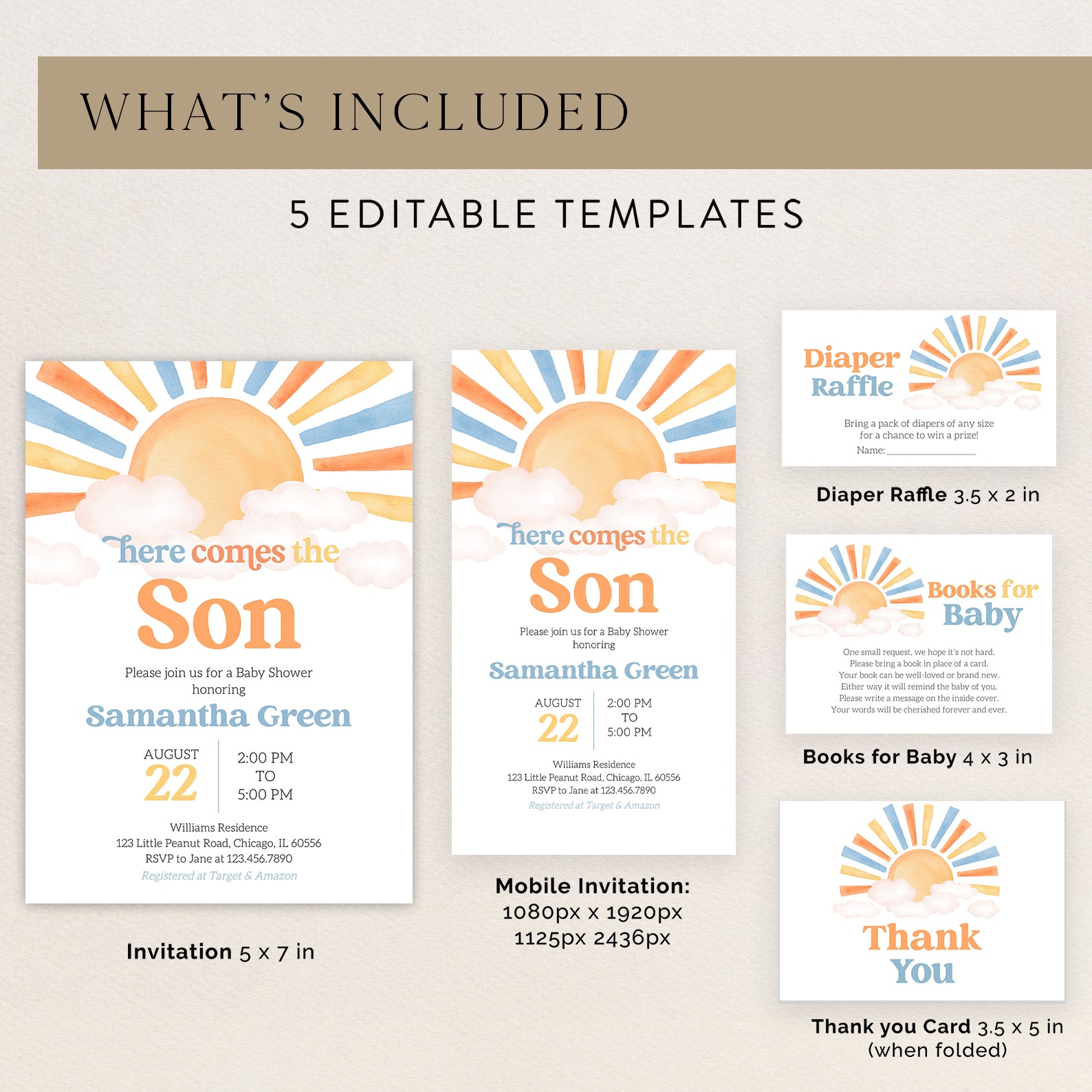 - Purchase this Sunny Baby Shower Invite Bundle: Minimalist Watercolor Design template