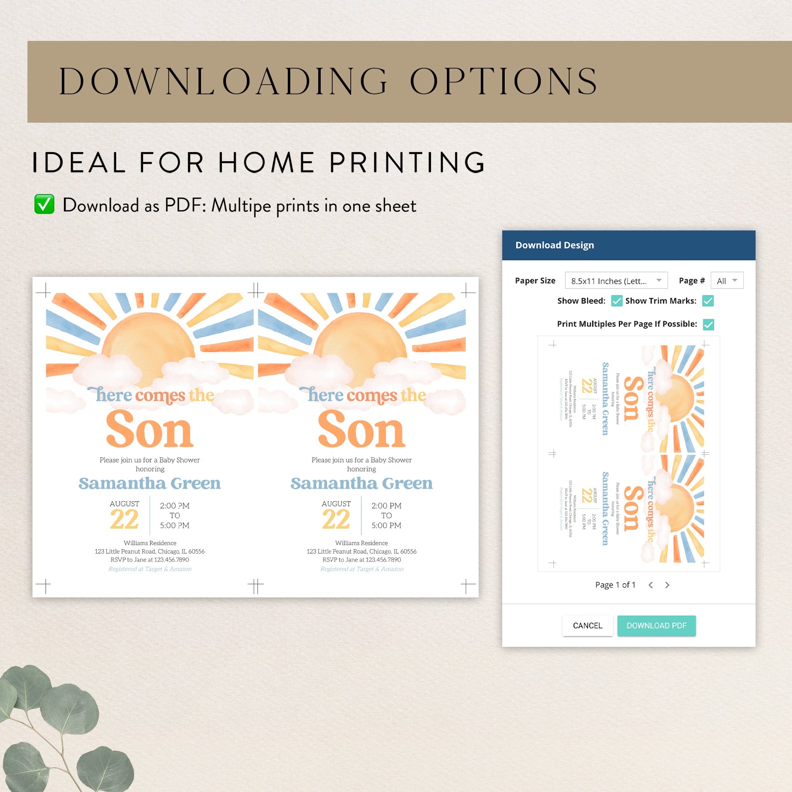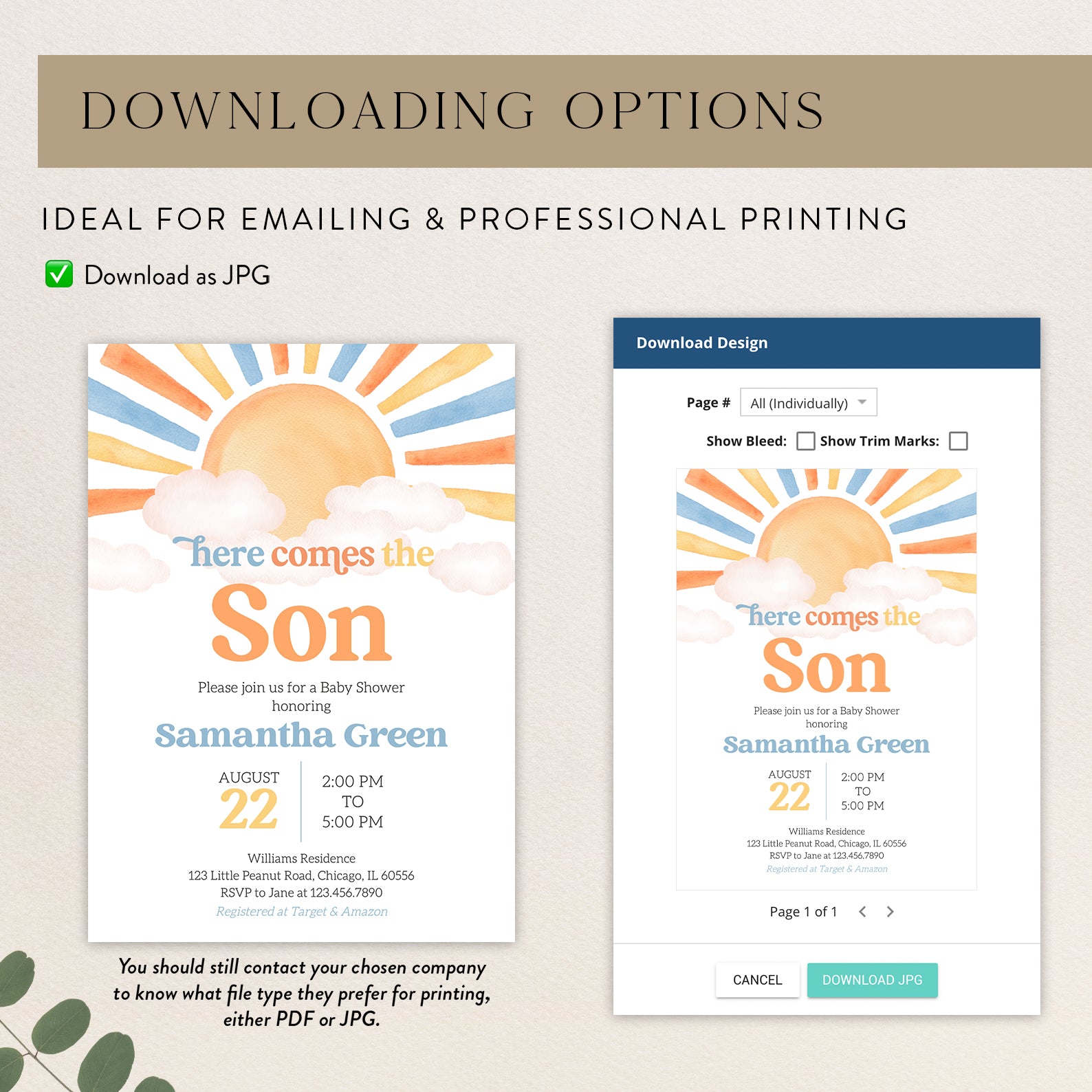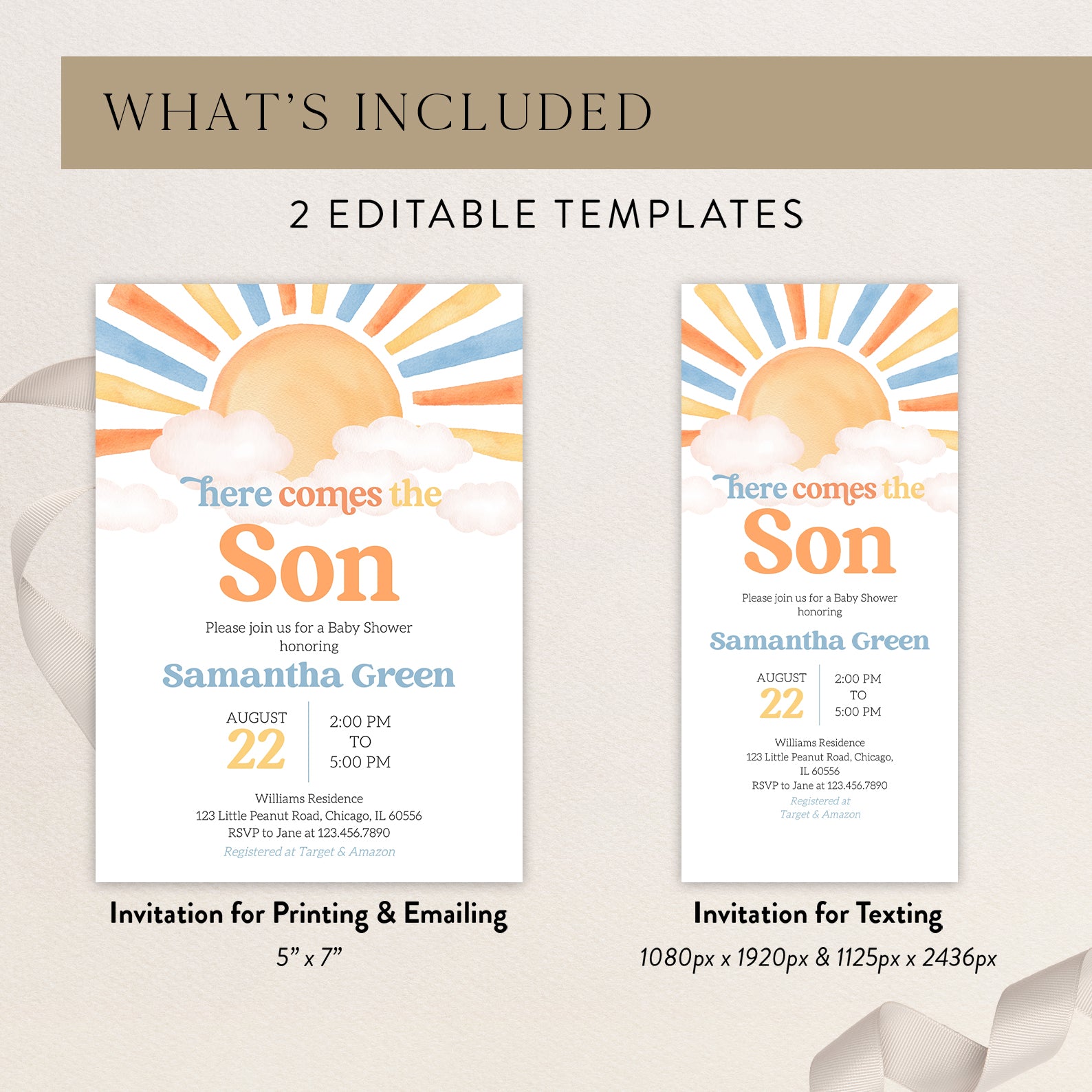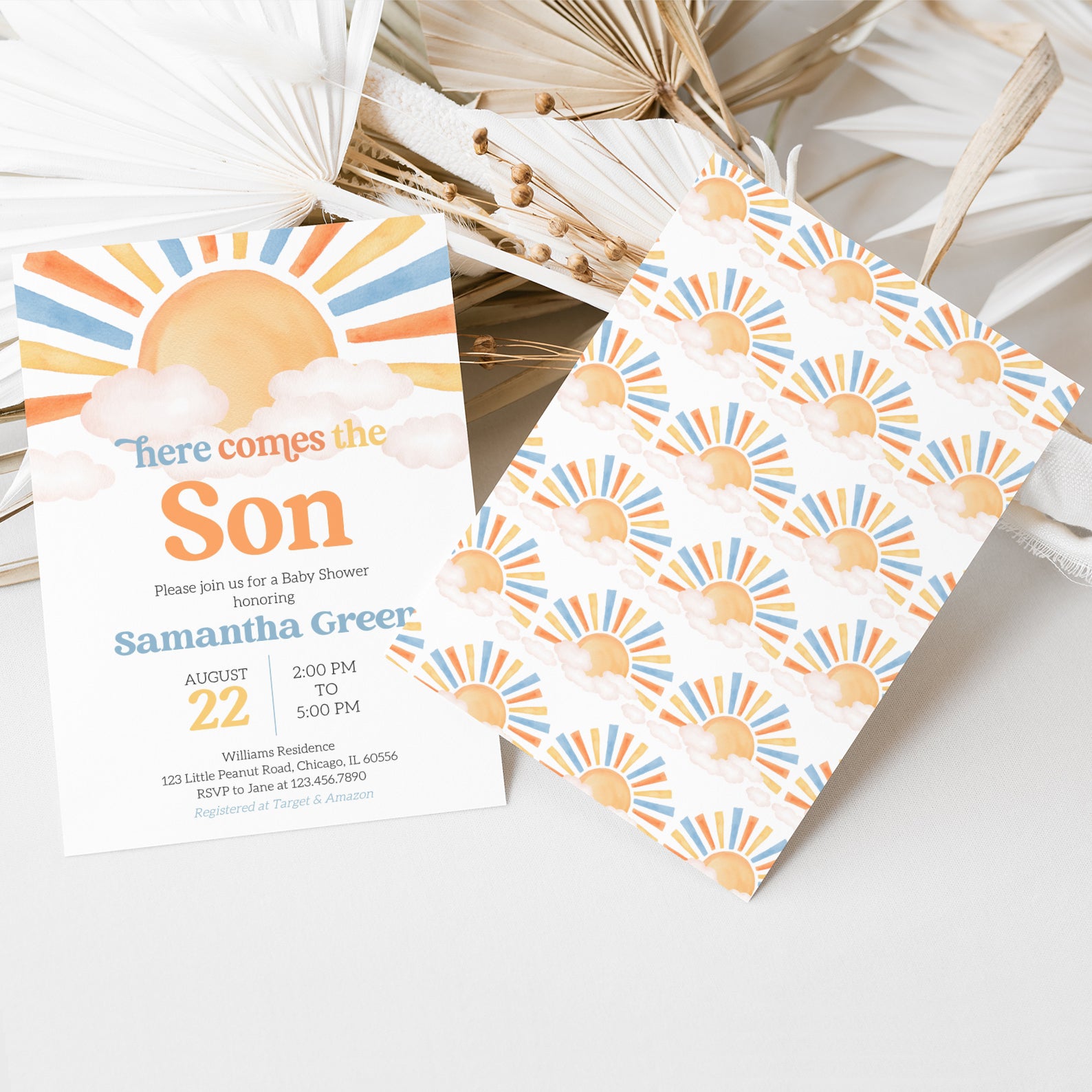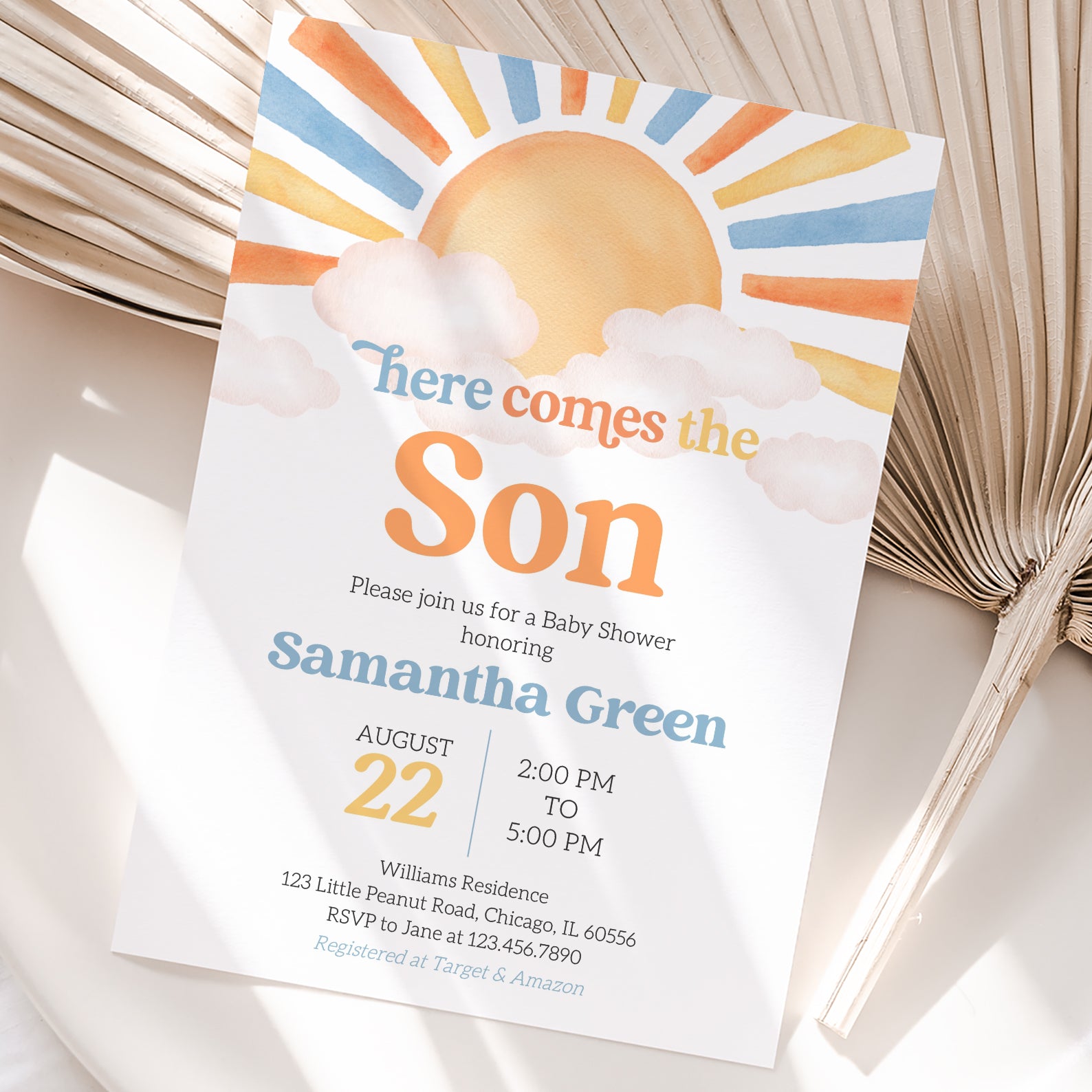 - Purchase this Sunny Baby Shower Invite: Minimalist Watercolor Design template