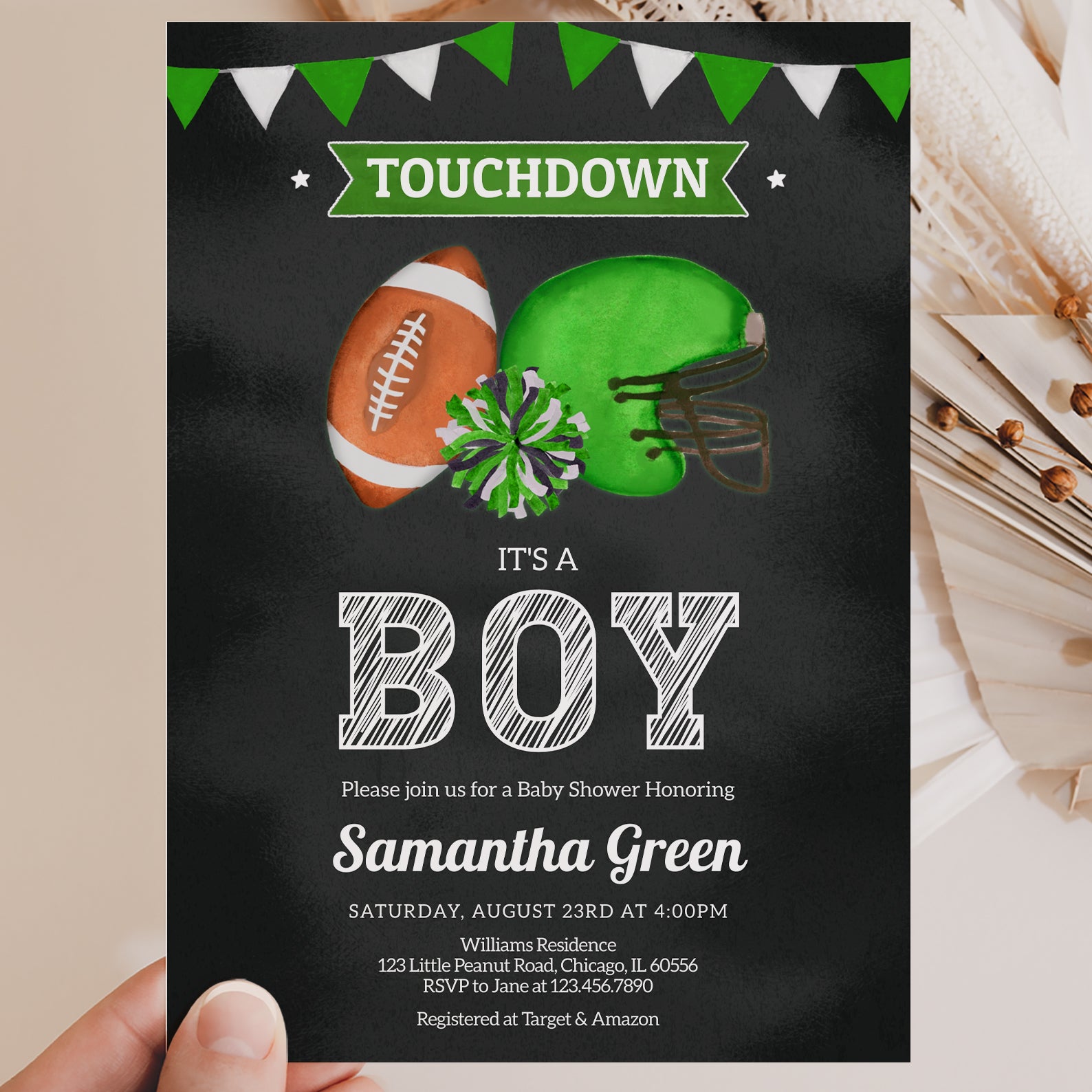Touchdown Baby Shower Invite: Football Theme for Boy