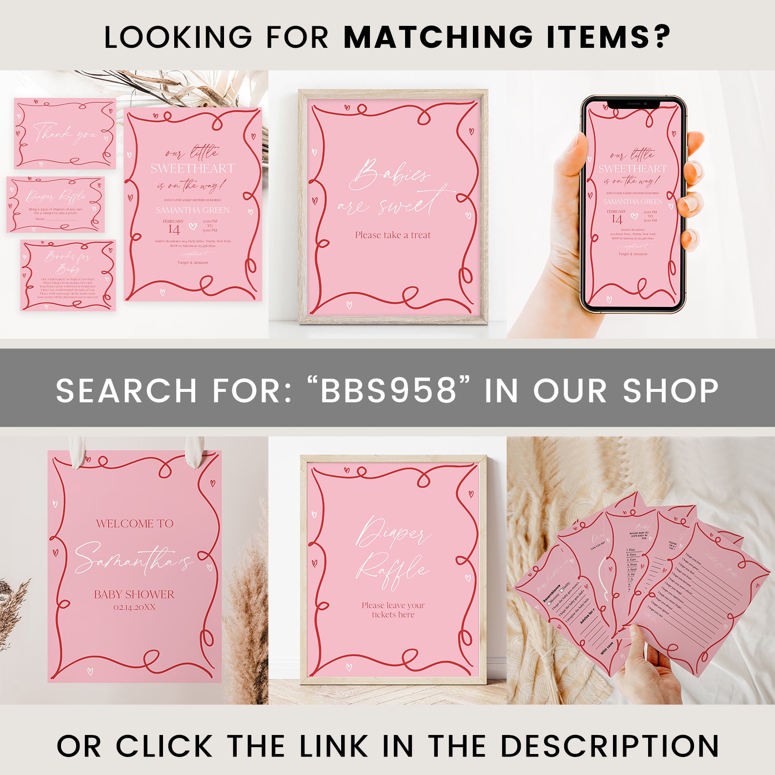 - Purchase this Valentine's Baby Shower Game Bundle with Red Ribbon & Pink Hearts template