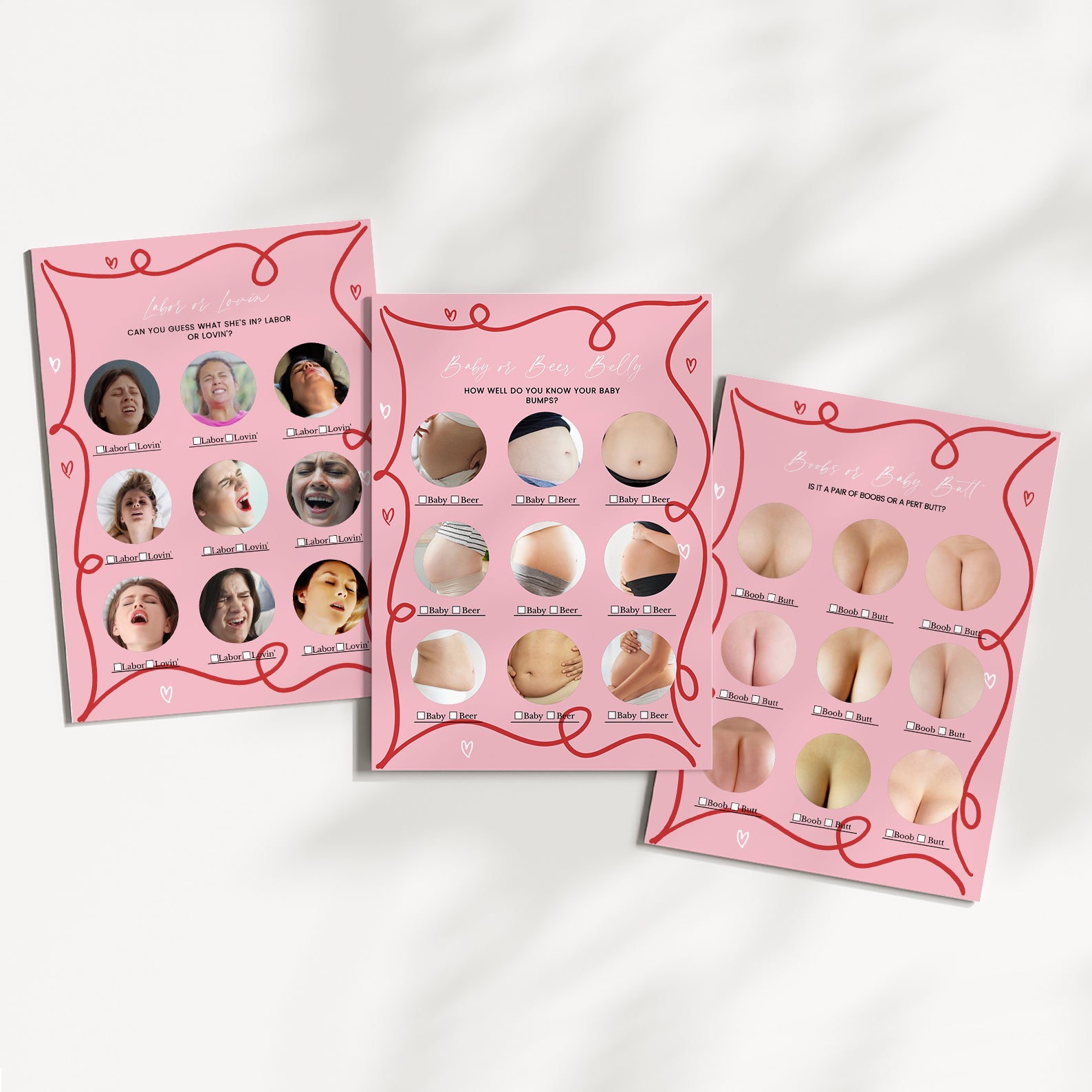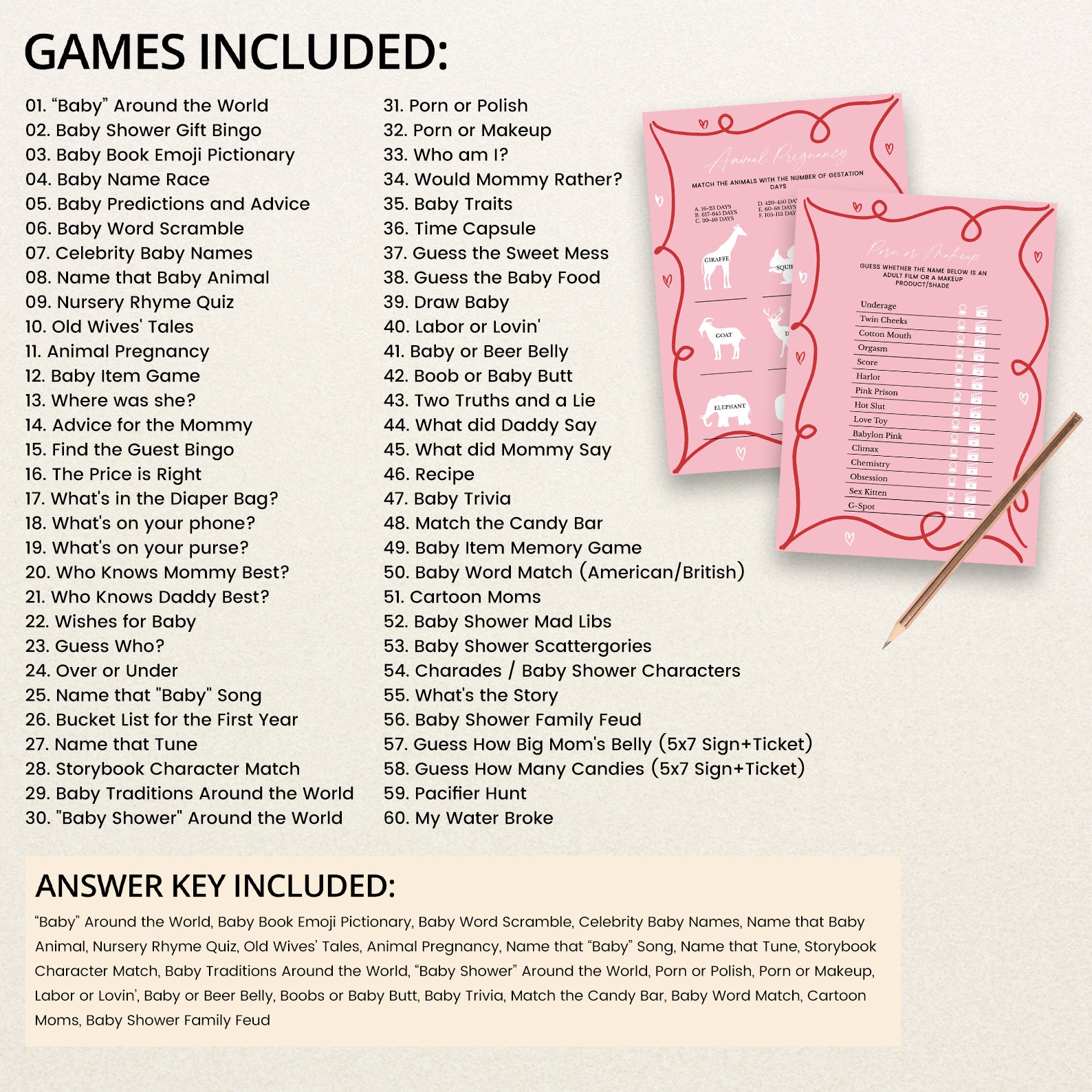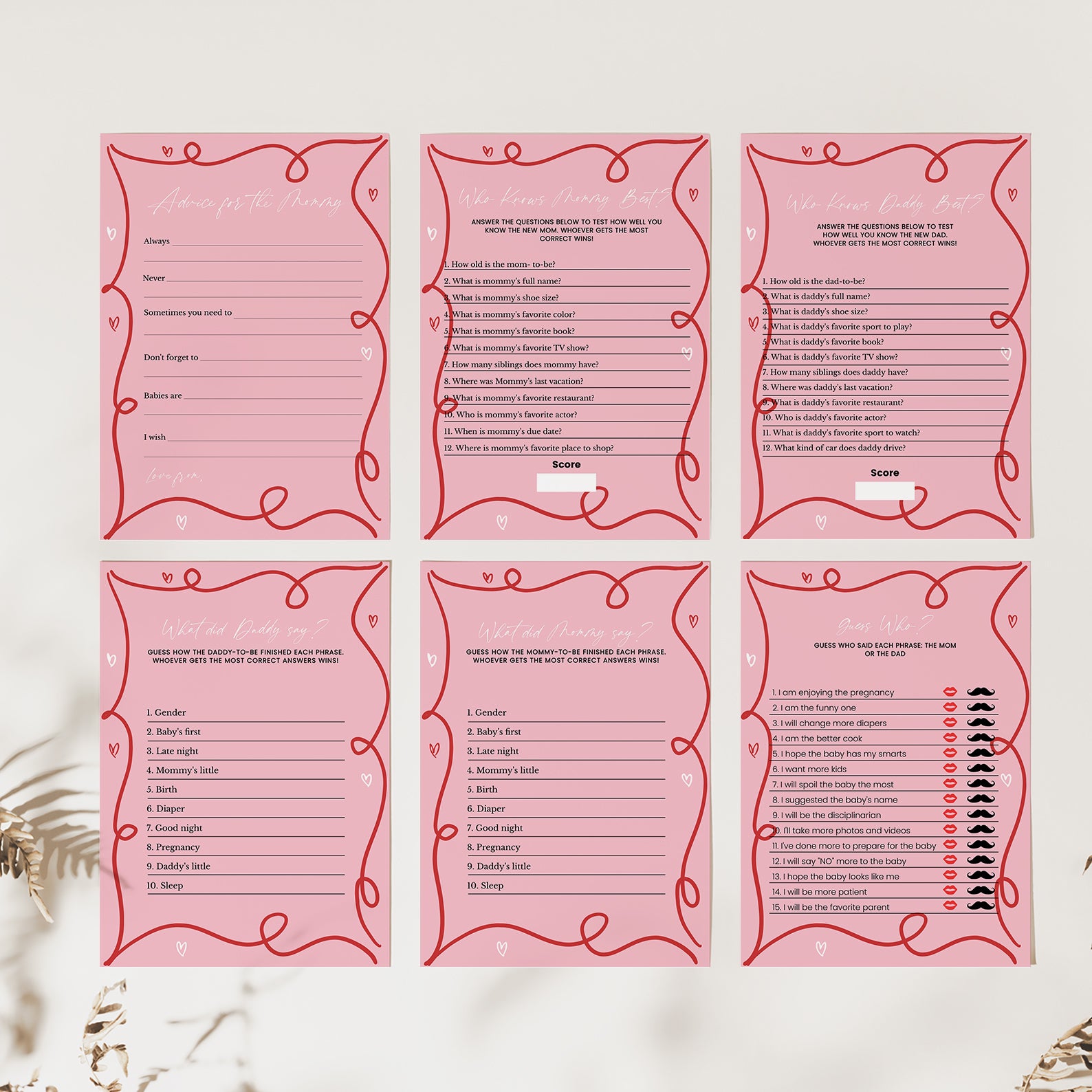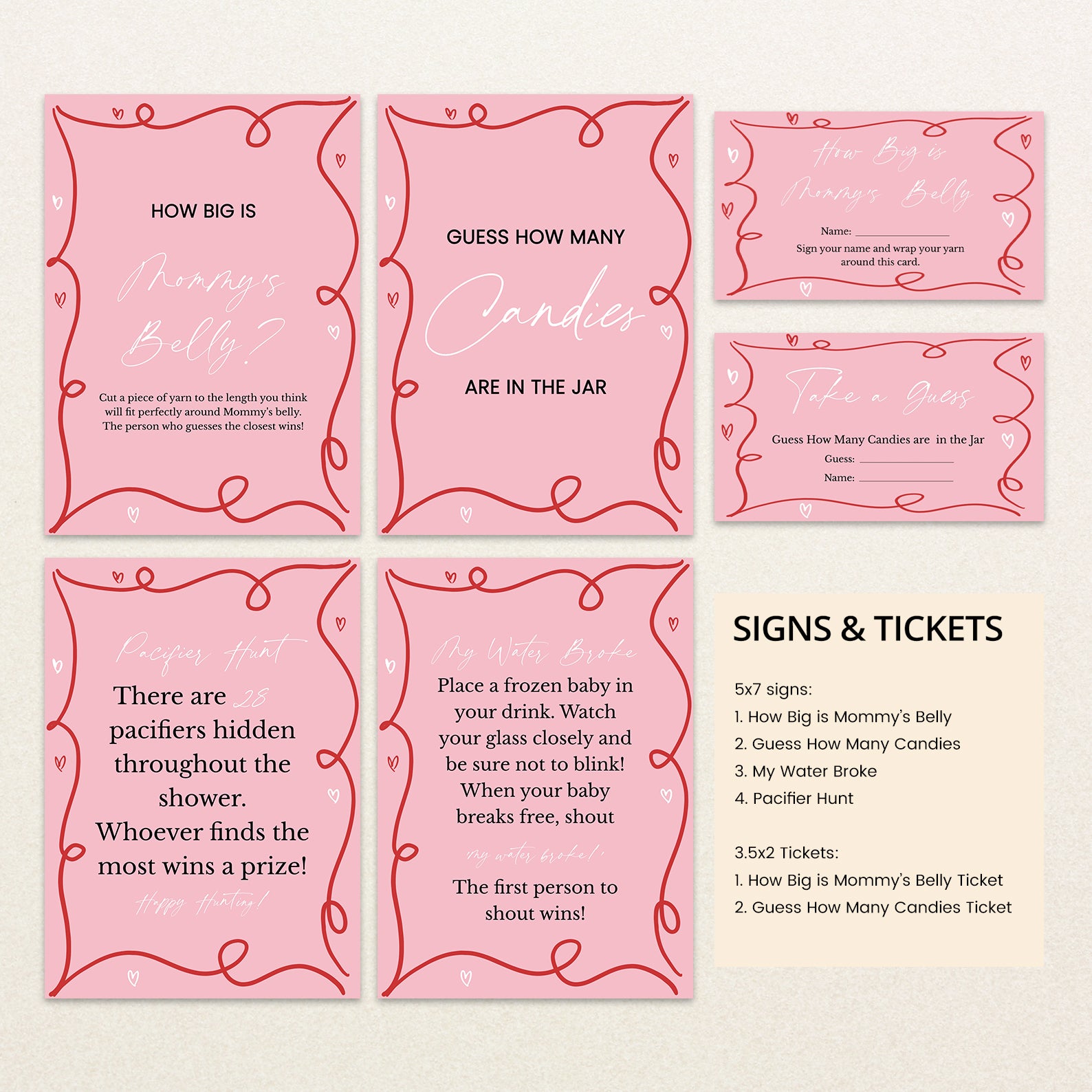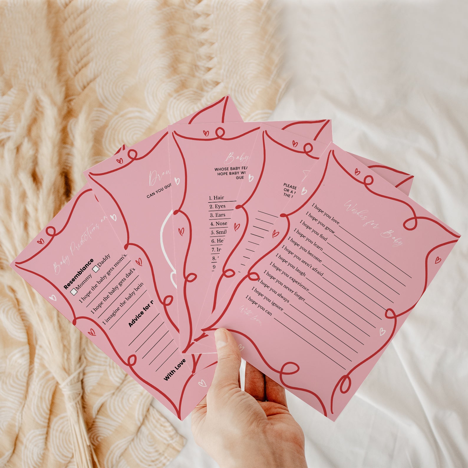 Valentine's Baby Shower Game Bundle with Red Ribbon & Pink Hearts